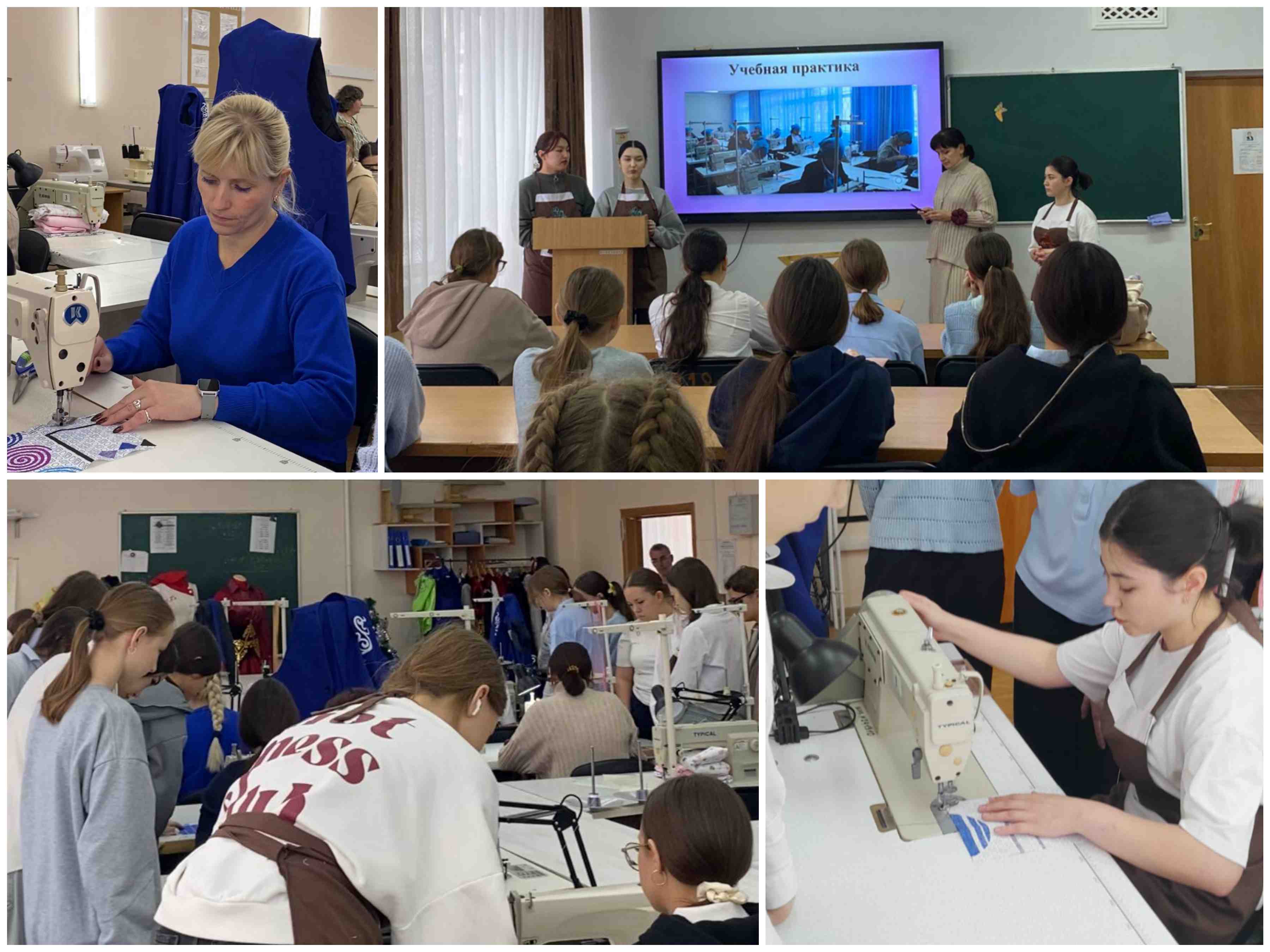ТШП-03 тобының студенттері оқушыларды «Өндірістік оқыту шебері» педагогикалық біліктілігі және «Тігін өндірісінің техник-технологы» техникалық біліктілігінің ерекшеліктерімен таныстырды. Сонымен қатар, колледждің әлеуметтік серіктестерінің тігін кәсіпорындарына экскурсия ұйымдастырылды. Студенттер универсал тігін машиналарымен жұмыс жасау бойынша оқу шеберлік сабағын өткізді. Әрбір оқушы тігін ісінде өз күшін сынап, өзінің «тәлімгерінің» жетекшілігімен тігін жолақтарын тігуге тырысты.