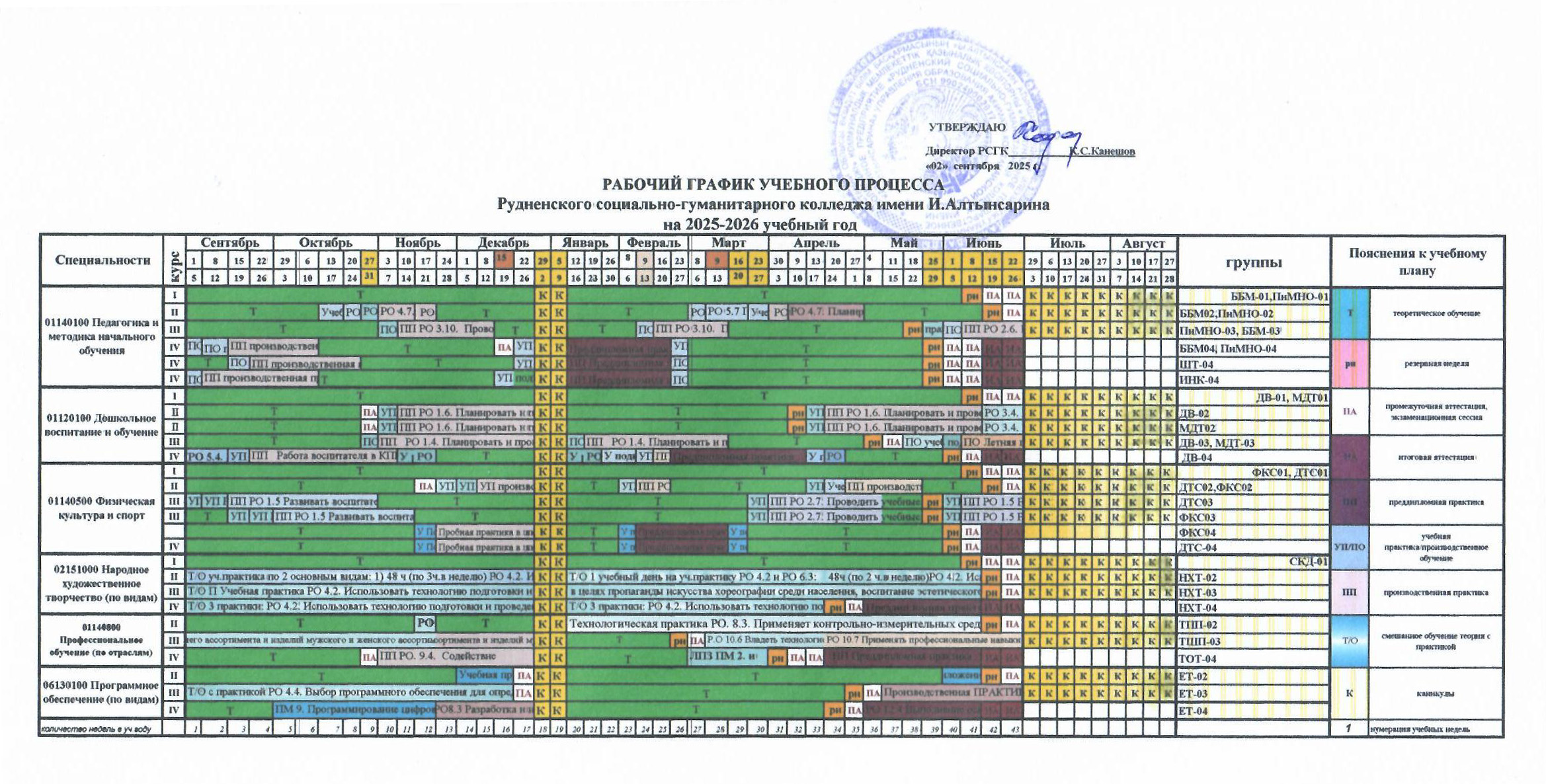 Оқу үдерісінің кестесі Ы. Алтынсарин атындағы Рудный әлеуметтік-гуманитарлық колледжінің ОҚУ ҮДЕРІСІНІҢ КЕСТЕСІ