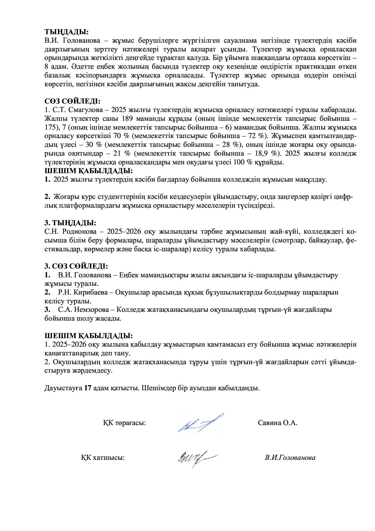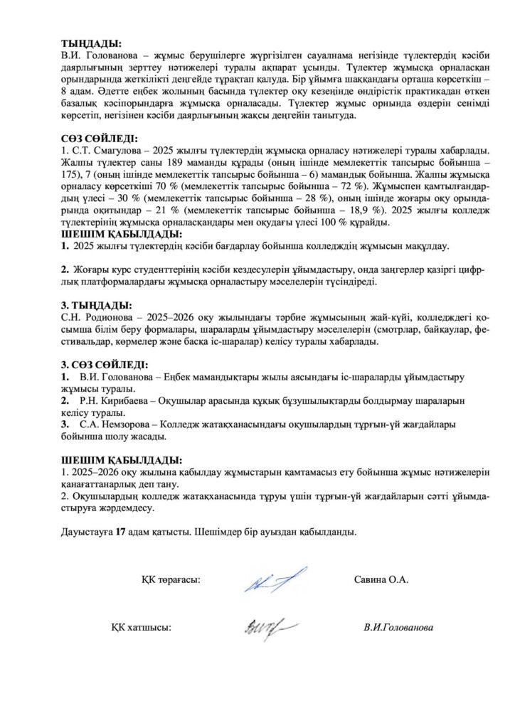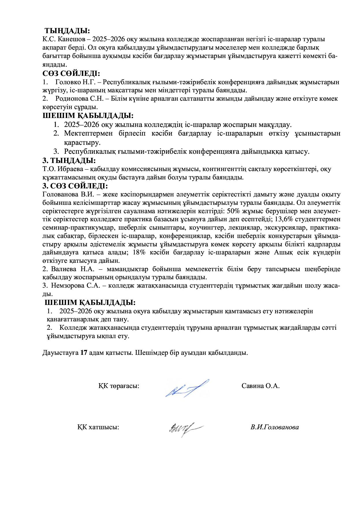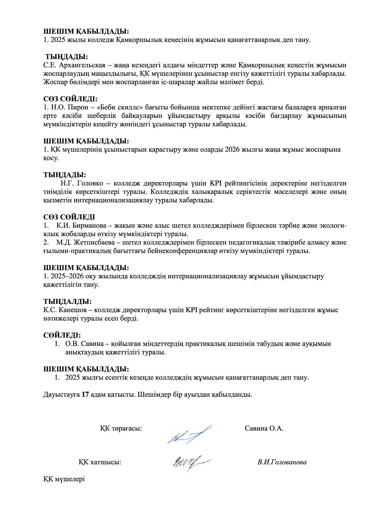«Ы. Алтынсарин атындағы Рудный әлеуметтік-гуманитарлық колледжі» КМҚК-де Қамқоршылық кеңесі құрылды. Бұл кеңестің төрағасы болып Рудный қаласы әкімдігі «Рудный қалалық білім бөлімі» ММ-нің жетекшісі К.С. Канешов тағайындалды. Кеңестің бірінші отырысы 12 қыркүйекте өтті, кездесудің тақырыбы «Болашаққа бағдар – рухани жаңғыру» – «Взгляд в будущее – модернизация общественного сознания» бағдарламасын жүзеге асыру, сонымен қатар колледждің 100 үздік студенті байқауын бастау идеясы.